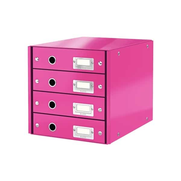 Suport de arhivare din carton Leitz Click & Store – 286x282x358 mm, 4 sertare – roz